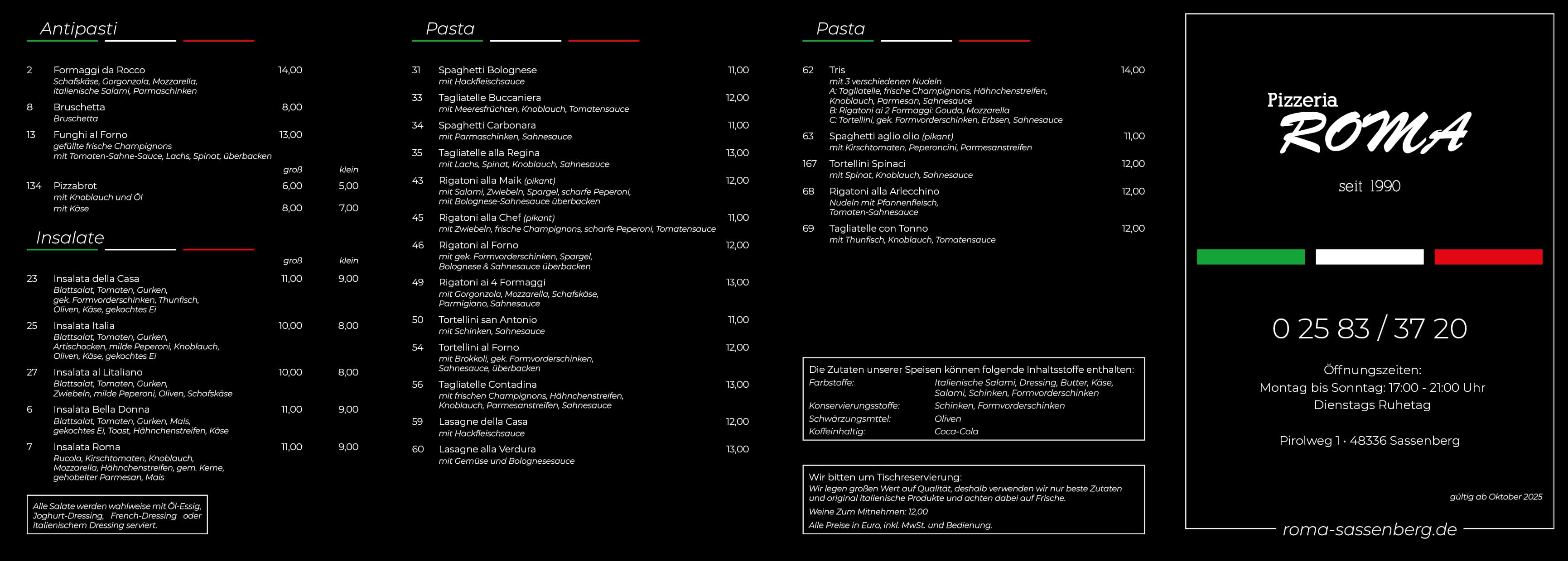 Speisekarte Vorne